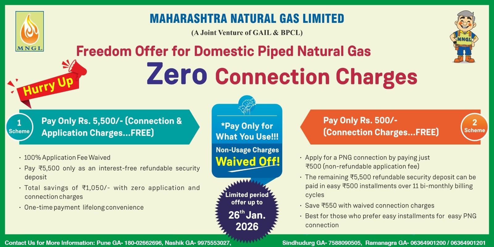 MNGL is authorized by Petroleum and Natural Gas Regulatory Board (PNGRB) to Lay, Build, Operate & Expand City Gas Distribution Project in the Geographical Areas of Pune & Pimpri-Chinchwad city including adjoining areas of Hinjewadi, Chakan & Talegaon, Valsad (except area already authorized), Dhule, Nashik District ,Sindhudurg District & Buldana, Nanded and Parbhani Districts in Maharashtra and Ramanagara District in Karnataka and Nizamabad, Adilabad, Nirmal, Mancherial Kumuram Bheem Asifabad & Kamareddy Districts in Telangana.